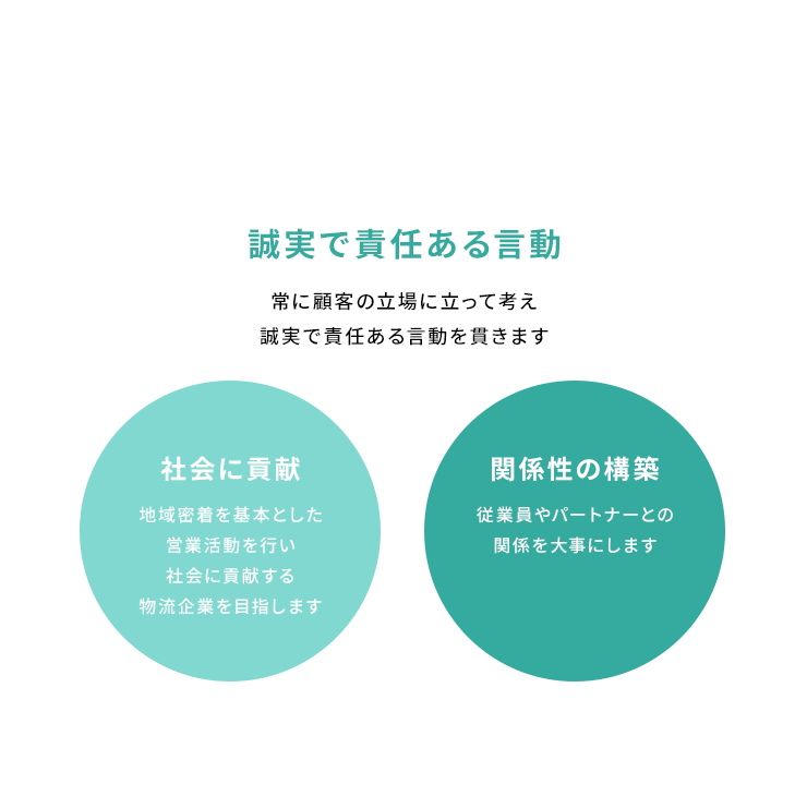 - 地域密着を基本とした営業活動を行い社会に貢献する物流企業を目指します